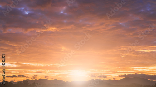 Fototapeta premium sunset sky in the evening with colorful sunlight over mountains