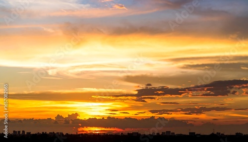 © Zakarya, Fototapeta premium Sunset sky over a city skyline.