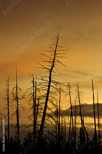 © Enrique, Obraz premium Sunset sky over burnt forest, Yellowstone NP, Wyoming, USA
