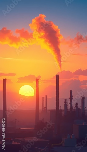 © Miryo, Obraz premium Sunset Sky Over Industrial Area