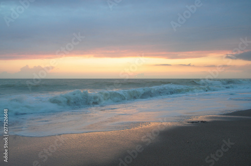 Fototapeta premium Sunset sky over the sea, waves and beach