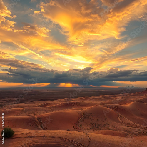 Naklejka premium sunset, sky, sunrise, sun, clouds, landscape, nature, cloud, orange, mountains, mountain, evening, light, dusk, red, sunlight, desert, cloudscape, sea