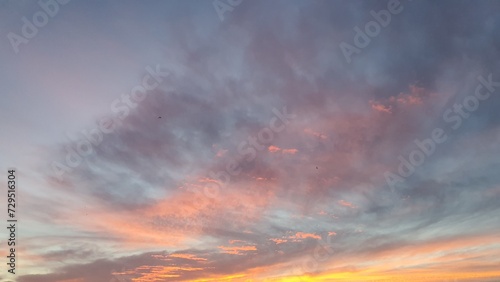 © Ayu Adilla Visuals, Fototapeta premium Sunset sky with clouds and distance birds
