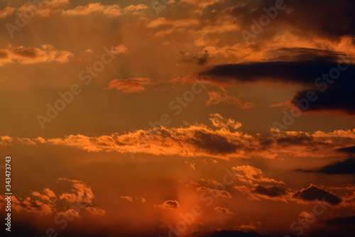 © Vladimir Arndt, Naklejka premium Sunset sky with clouds. Nature background.