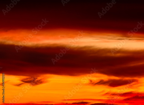 © Moneynetar , Fototapeta premium Sunset sky with dramatic swirling clouds and vibrant colors – ideal nature background for commercial design Abstract Orange Red Gradient