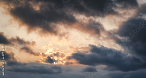 © olezzo, Fototapeta premium Sunset sky with gray clouds. Evening sky nature background