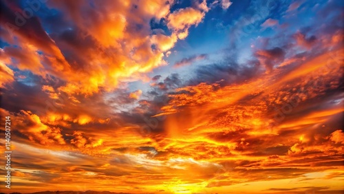 © suchetpong, Obraz premium Sunset sky with orange clouds