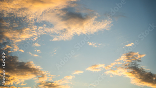 © Davyd Varabyou, Fototapeta premium Sunset sky with orange clouds