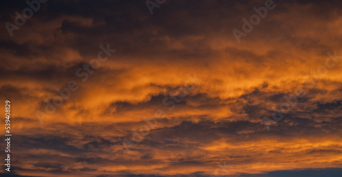 Fototapeta premium Sunset sky with orange clouds. Nature background.