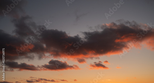 Fototapeta premium Sunset sky with orange clouds. Nature background.