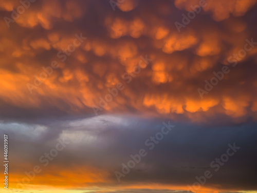 © NoonBusin, Obraz premium Sunset sky with soft lumpy clouds.