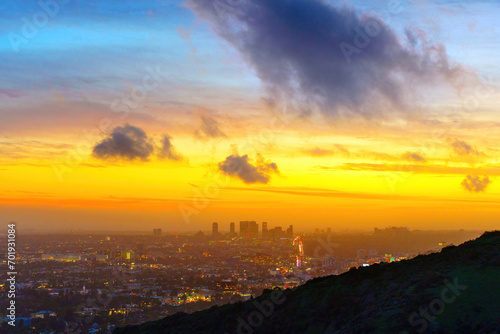 © Katie Chizhevskaya, Fototapeta premium Sunset Splendor: Los Angeles Skyline from Runyon Canyon Park