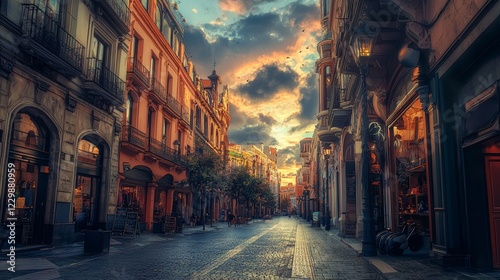 © Mulyadi Lim, Fototapeta premium Sunset Streetscape: A Charming Evening in a European City