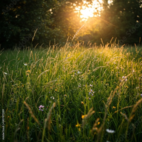 Obraz premium Sunset Sunlight Through Tall Grass Field