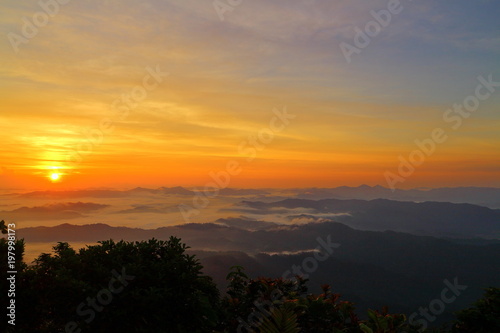 © khlongwangchao, Fototapeta premium sunset sunrise in the mountains