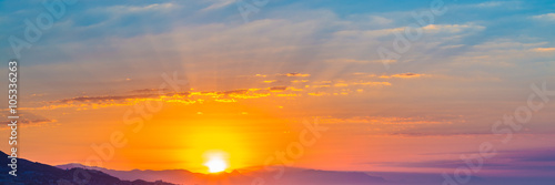 © Great Brut Here, Obraz premium Sunset Sunrise Over Dark Mountain Silhouette