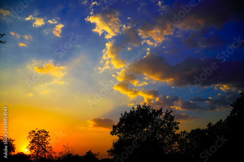 © Niks Ads, Fototapeta premium Sunset / sunrise with clouds, Panoramic view of a cloudy sky at sunset