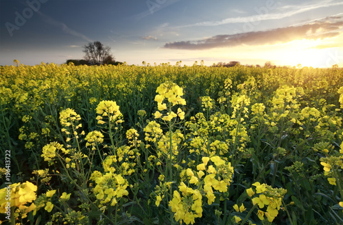 Obraz premium sunset sunshine over rapeseed field