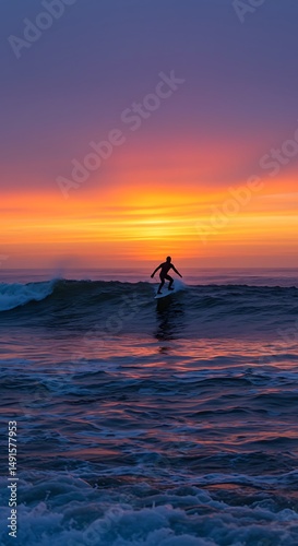 © Matthew, Naklejka premium Sunset Surfer's Silhouette AI Generated