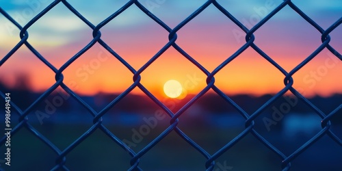 © Nice Seven, Fototapeta premium Sunset Through Chain Link Fence