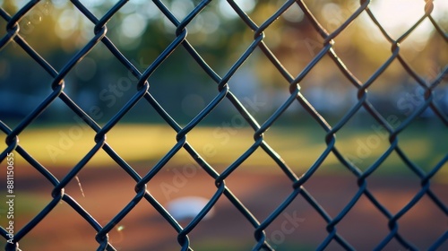 Fototapeta premium Sunset Through Chain Link Fence at Playground