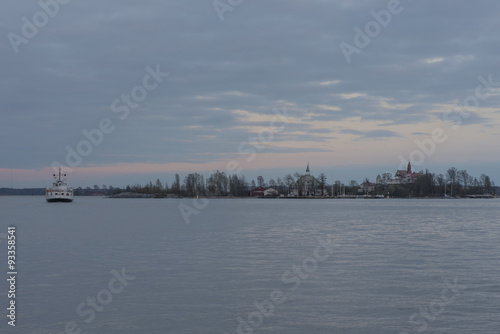 Naklejka premium Sunset time at Island in the Baltic sea near Helsinki city. Finland.