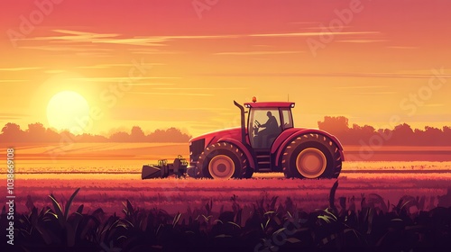 © Heni, Fototapeta premium Sunset Tractor