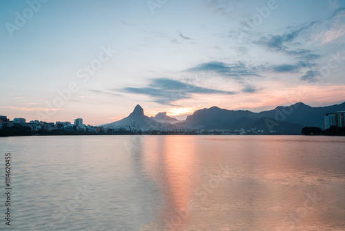 Obraz premium Sunset view at Rodrigo de Freitas Lagoon in Rio de Janeiro.
