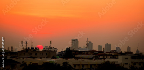 Fototapeta premium Sunset view Beautiful golden yellow sky in big cities