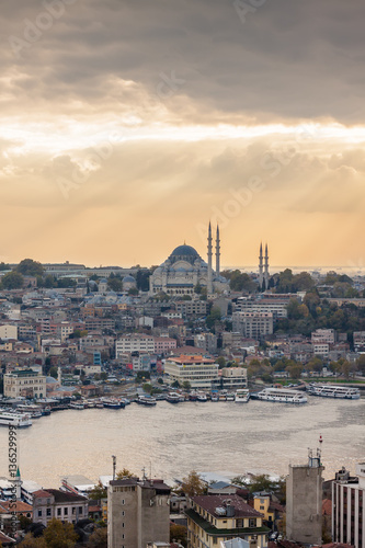 Naklejka premium Sunset view from Galata tower to Golden Horn, Istanbul, Turkey.