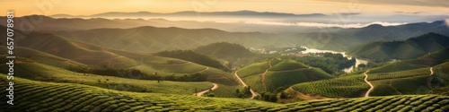 Fototapeta premium Sunset view of a Brazilian coffee plantation at