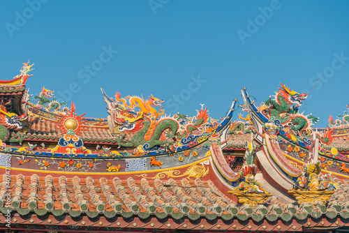 © Zimu, Fototapeta premium Sunset view of a wind turbine farm on top of mountain.