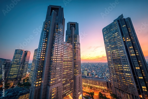 © Resi, Obraz premium Sunset View of Modern Towers in Tokyo