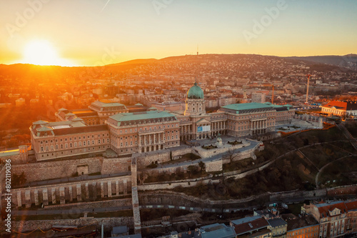 © Todayphoto, Fototapeta premium Sunset view of parliament, buildings and city. Dramatic evening view in Budapest, Hungary, Europe.
