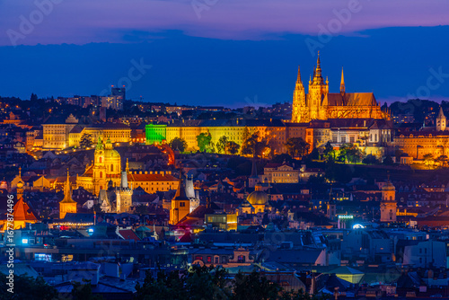 © dudlajzov, Fototapeta premium Sunset view of Prague from Rieger orchards in Prague, Czech repu