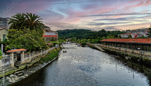 Fototapeta premium Sunset view of river Mandeo at the city of Betanzos, in the Galicia region of Spain.