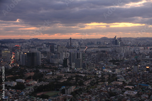 © marcuspon, Fototapeta premium Sunset View of Seoul’s Skyline in South Korea