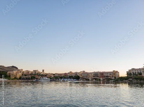 Fototapeta premium Sunset view of some beautiful building at Lake Las Vegas