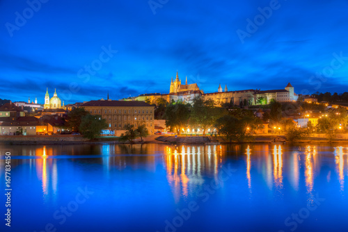 Fototapeta premium Sunset view of the Prague castle and vltava river in Prague, Cze