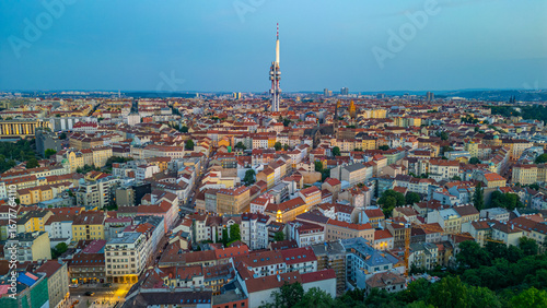 © dudlajzov, Fototapeta premium Sunset view of Zizkov TV tower overlooking Prague, Czech republi