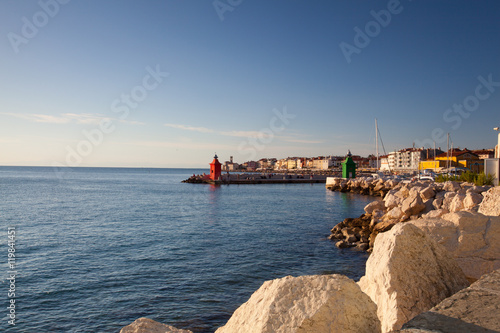© Radomir Rezny, Naklejka premium Sunset view on the coastline in Piran town.