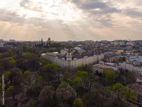 © phpetrunina14, Fototapeta premium sunset view over old european town. sunset rays