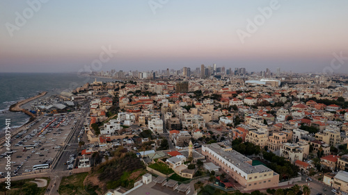 © Arkady Abovsky, Naklejka premium Sunset view over the coastline of Jaffa Tel Aviv Bat-Yam Israel