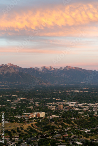 Obraz premium Sunset views of the Salt Lake Valley and Wasatch Range from Ensign Peak, Utah.
