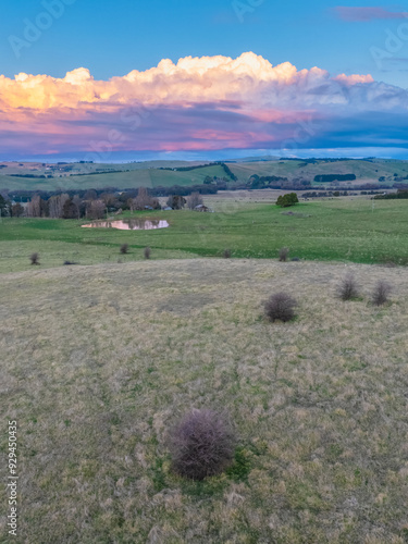 © Merrillie, Fototapeta premium Sunset views over rural farmland with clouds