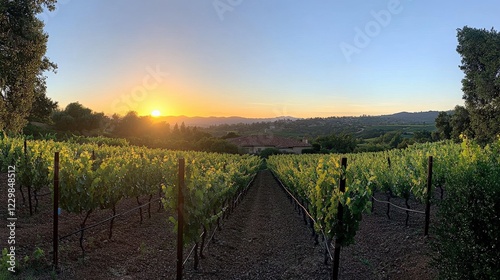 Fototapeta premium Sunset vineyard views napa valley landscape photography scenic nature wide perspective wine country serenity