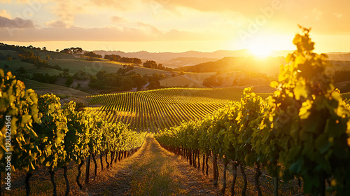 © Nikola, Naklejka premium Sunset Vineyard Vista