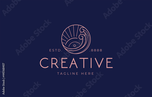 © Profdesigns, Fototapeta premium Sunset waves Logo Design Template. Sea ocean with summer season Symbol Icon Line Art Vector
