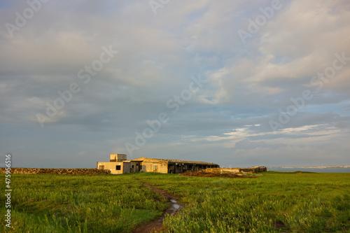Fototapeta premium Sunset with a farm building at Penghu island