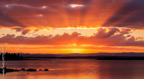 © AURA, Naklejka premium sunset with beautiful and charming clouds